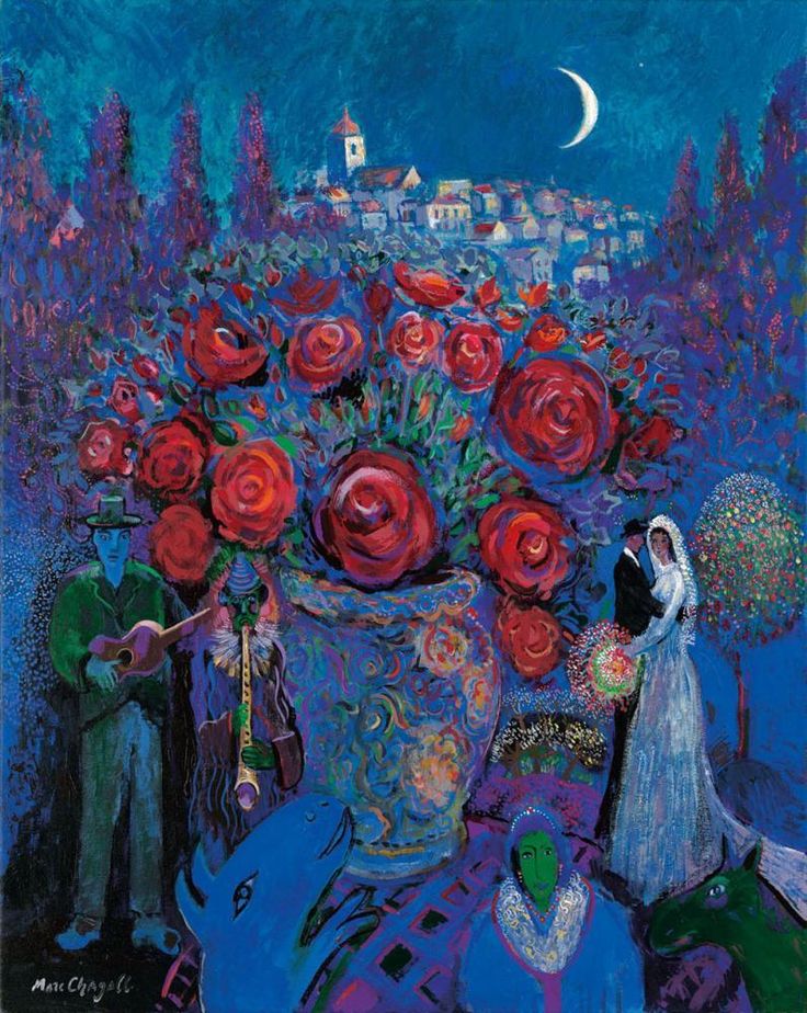 Para ilustrar algumas de suas reflexões, o surrealismo de Marc Chagall estimula a atividade criativa e destrói o olhar convencional