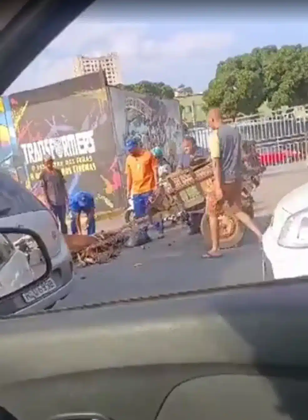 Cavalo puxando carroça cai de exaustão em avenida de BH por causa do calor.
