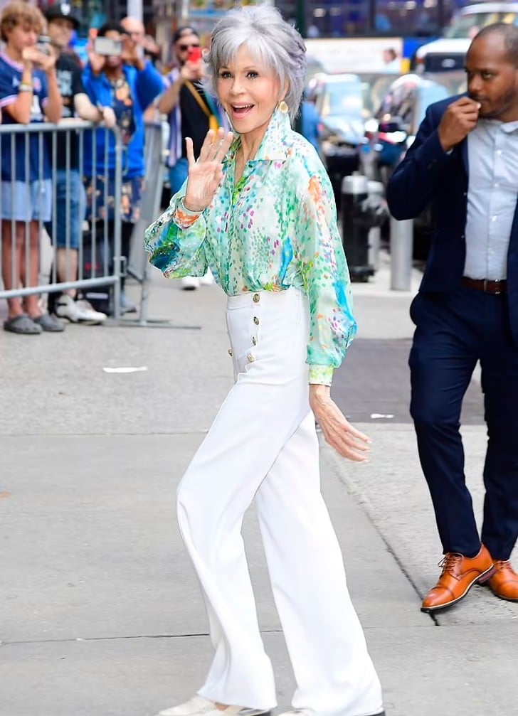 Em uma de suas últimas aparições a caminho de uma entrevista no Good Morning America, vimos cabelos grisalhos exuberantes, acompanhados de um rosto luminoso e uma figura excepcional para uma mulher de 84 anos.