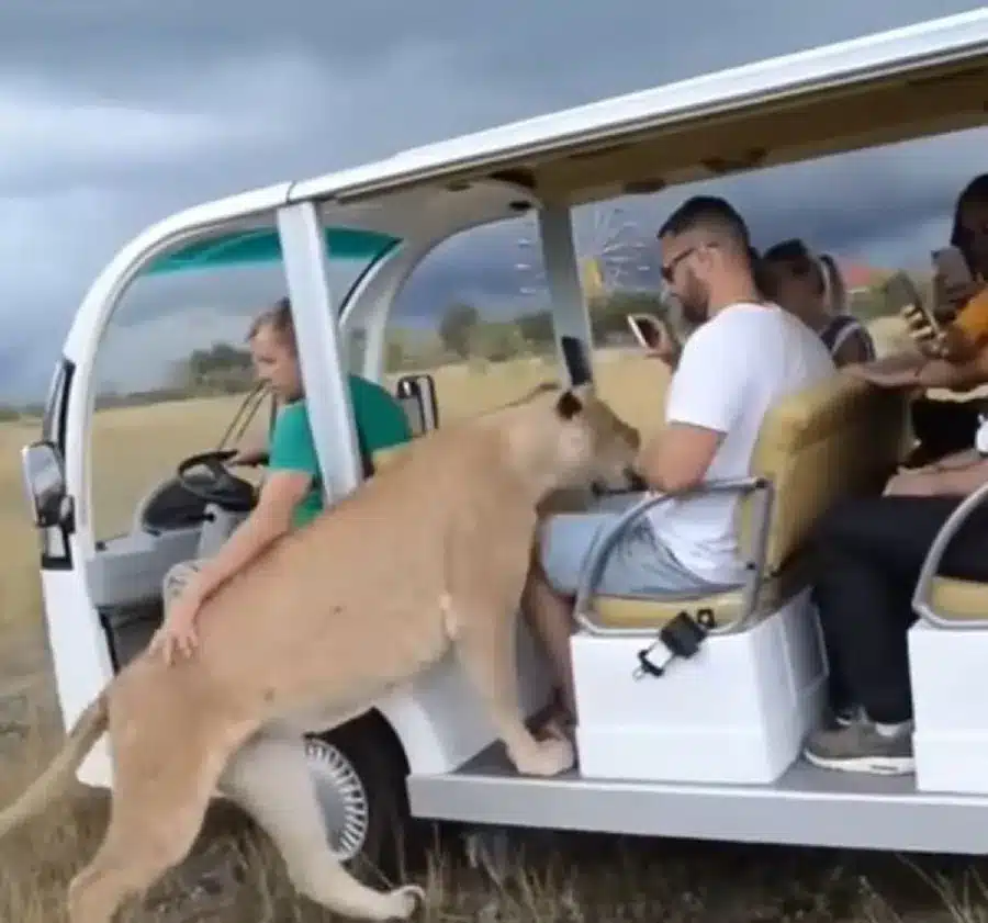 Essa cena inusitada e emocionante tem conquistado a atenção dos internautas nas redes sociais nos últimos dias. Um vídeo mostra o momento em que uma leoa decide surpreender um grupo de turistas, invadindo o carro no qual eles estavam durante um passeio em um safári. O incidente, capturado por diversos espectadores através de seus celulares, logo se tornou viral na internet.
