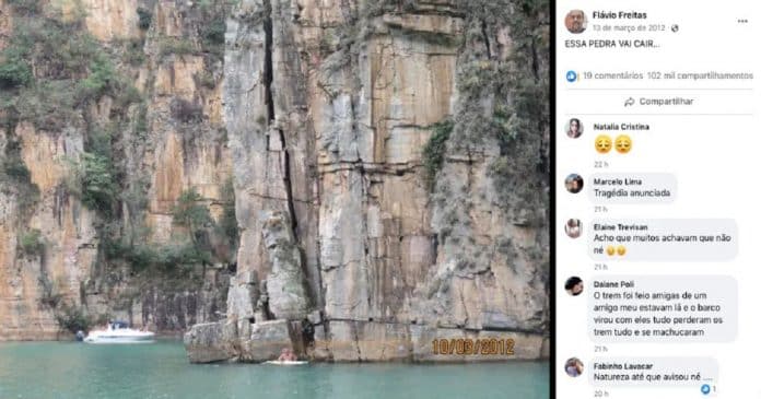 “Em uma dessas viagens, passei por esse local onde houve o acidente, um dos mais visitados ali em Capitólio, e aquela fenda me chamou atenção, porque realmente ela é extensa, larga. Visualmente, ela apresentava um aspecto perigoso. Fiz a foto na ocasião e escrevi: ‘Essa pedra vai cair’. E passou”, disse Freitas.