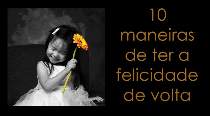 Com isso em mente apresento à vocês 10 maneiras de trazer a felicidade de volta para sua vida. É claro que não são milagres e não curam quem está muito doente, mas com certeza são dicas que podem ajudá-los a obter uma melhor perspectiva sobre o que está acontecendo ao seu redor.