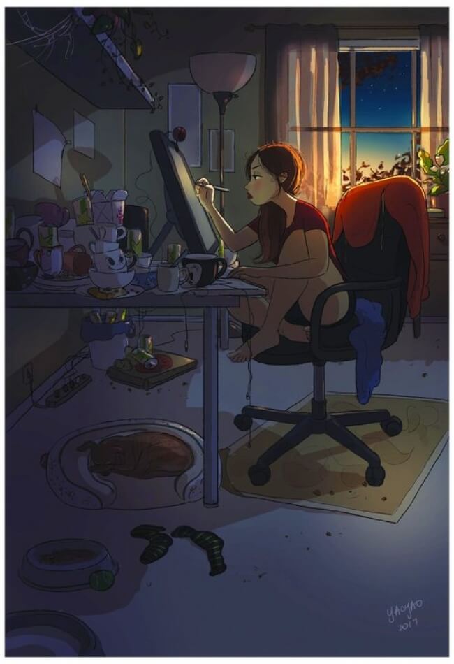 Yaoyao Ma Van é uma ilustradora maravilhosa que, só no Instagram, possue mais de 437mil seguidores. Com esses números fica fácil de entender a sua capacidade de transmitir ideias e sentimentos através de deus desenhos, né.