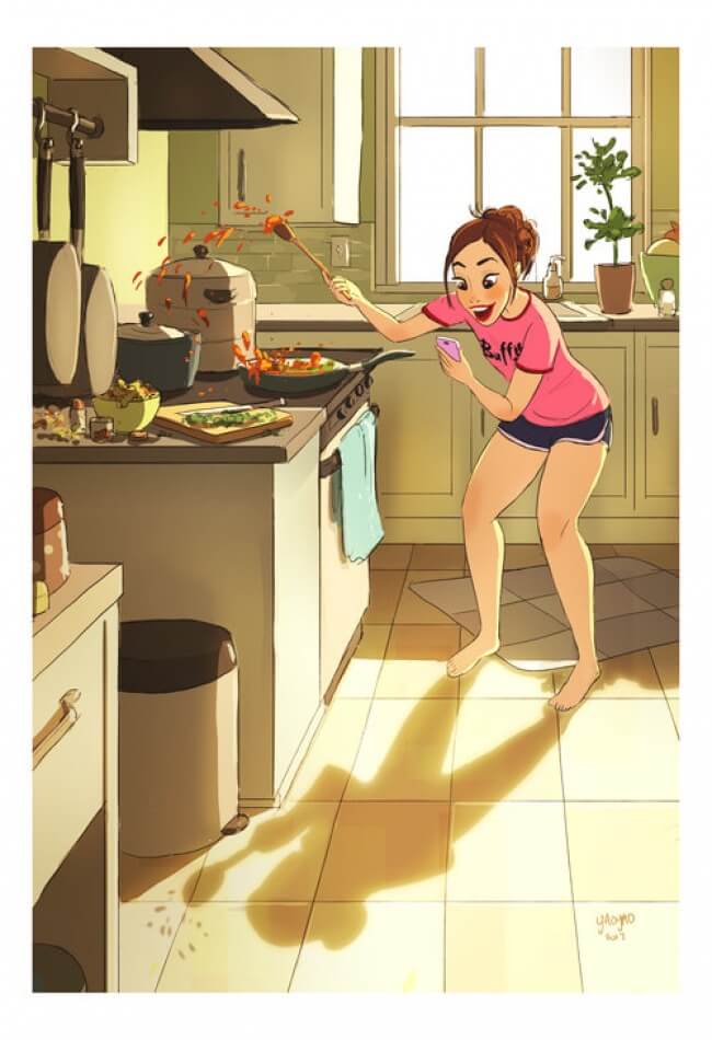 Nessa seleção de 17 imagens, vocês encontrarão um pouco da rotina que toda garota que vive sozinha entende bem.