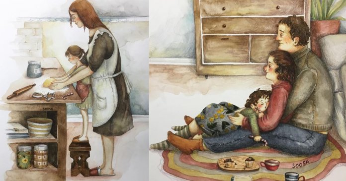 A vida nos ensina que o amor mora muito mais nos atos que nas palavras. Para exemplificar momentos que transmitem carinho e afeto, a ilutradora Snezhana Sush é praticamente insuperável.