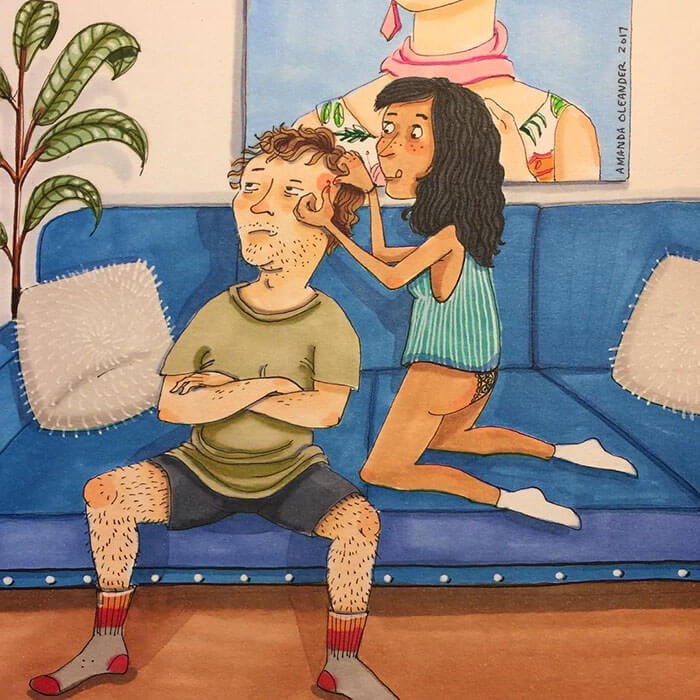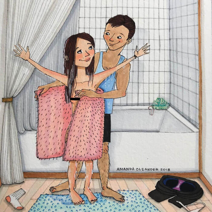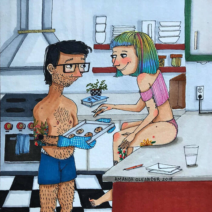 A artista americana Amanda Oleander criou ilustrações belíssimas que mostram momentos de intimidade de casais há muito tempo juntos. Elas transmitem um senso de amor e cumplicidade, fazendo com que se atente para as coisas simples que significam muito na vida de parceiros afetivos.