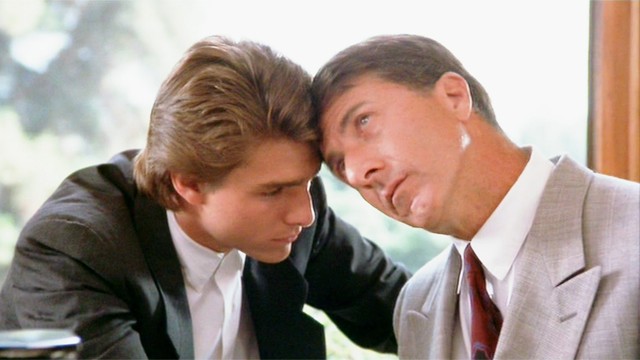 Filme dirigido por Barry Levinson. Charlie (Tom Cruise), após a morte do seu pai, descobre que herdou um carro e algumas roseiras premiadas, enquanto seu irmão, Raymond (Dustin Hoffman), que ele não conhecia havia herdado três milhões de dólares. Autista, Raymond é levado pelo irmão para Los Angeles, onde Charlie pretende exigir metade do dinheiro, mas durante a viagem os dois irmãos vão se aproximando.