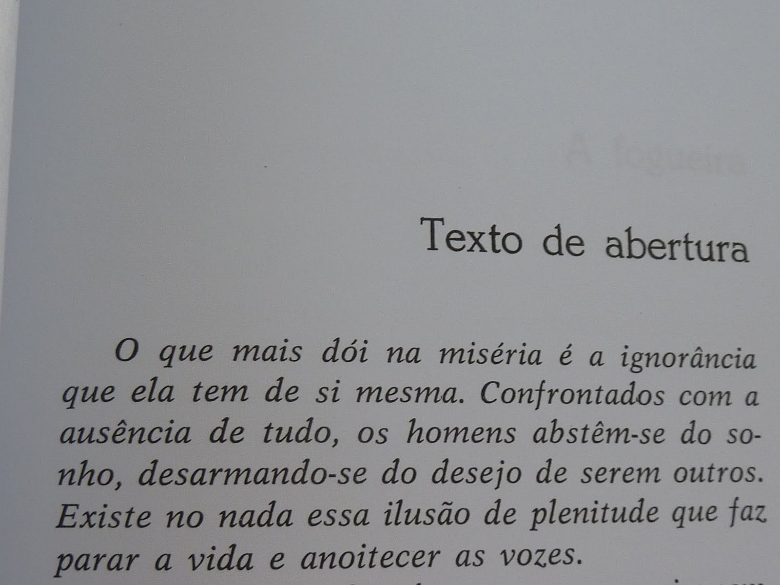 1 – Existe no nada essa ilusão de plenitude que faz parar a vida e anoitecer as vozes.