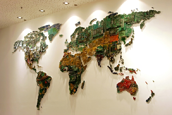 13- ‘World’. Mapa feito com material reciclado de computador (Fonte: Susan Stockwell)