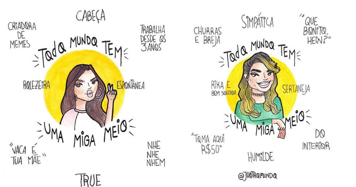 O artista Pedro do canal e página Jhotromundo (@jhotromundo) fez uma série de ilustrações que mostram aquelas amigas que todo mundo tem…