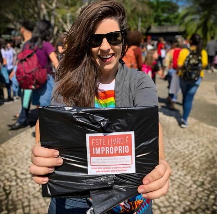 Na ação, os livros foram distribuídos dentro de um saco preto, acompanhados de um aviso dizendo: “Este livro é impróprio – para pessoas atrasadas, retrógradas e preconceituosas.”