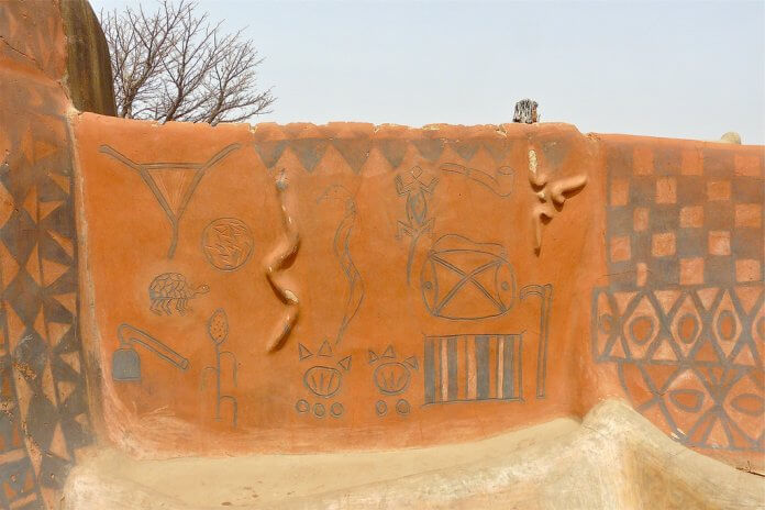 O Burkina Faso é um país pobre, mesmo para os padrões da África Ocidental e possivelmente o mais pobre do mundo. Mas eles são culturalmente ricos, e decorar as paredes de suas casas é uma parte importante de seu legado cultural nesta área do país. A decoração da parede é sempre um projeto comunitário feito pelas mulheres.
