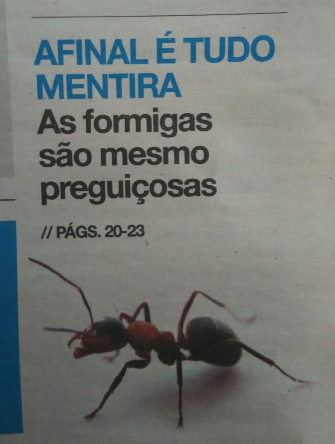 Esses dias, um amigo publicou um post em que um jornal anunciava: Afinal é tudo mentira: As formigas são mesmo preguiçosas. A matéria afirmava que “apenas 2,6% das formigas estava trabalhando o tempo todo durante as observações, enquanto 71,9% passavam metade do dia sem fazer nada. As formigas que apareceram o tempo todo inativas eram 25,1%”.