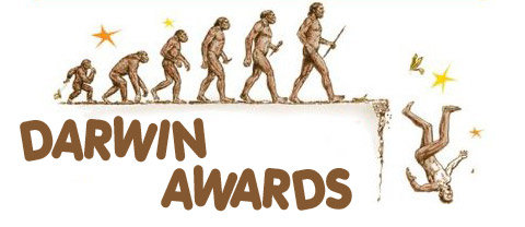 Por falar em campeonato, existe um prêmio especialmente dedicado para aqueles que, ao retirarem seus próprios genes do mercado, contribuem para a evolução da humanidade. Como não poderia deixar de ser, é o Prêmio Darwin (Darwin Awards), que homenageia aquelas pessoas que morreram vítimas de suas próprias ideias, provando que não tinham a inteligência como uma característica genética particularmente forte. Para dar uma ideia, um dos vencedores resolveu fazer um bungee jumping caseiro, comprando as cordas e fazendo todos os cálculos que achou necessários. Ele só esqueceu de levar em conta que as cordas se esticavam e o resultado já dá pra imaginar.