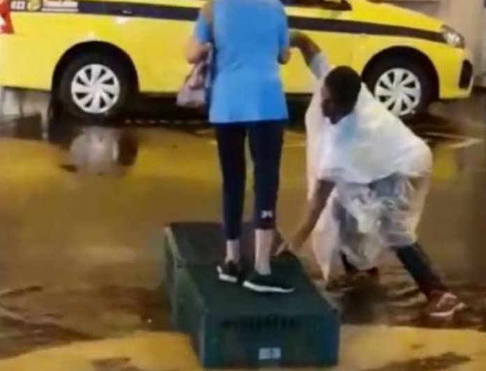 Mas a cena incomodou quem viu ali desenhado um quadro de subserviência e desprezo. Alguns disseram que a passante não teria expressado a devida gratidão pela gentileza.