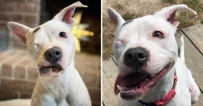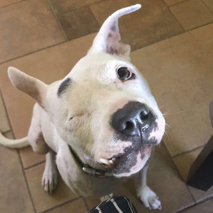 Se há alguém que poderia nos explicar isso muito bem, esse alguém é a cachorrinha Bubbles, da raça bull terrier, que foi transferida para um abrigo para cães quando tinha apenas seis meses de idade, depois de ter sido vítima de um ataque cruel. Bubbles perdeu o olho direito depois de ser atingida por uma bala de revólver. O tiro também prejudicou sua mandíbula. Uma tomografia computadorizada deu mais detalhes, deixando claro que ela conseguiu se recuperar, mas que nunca mais conseguiria abrir completamente a boca.