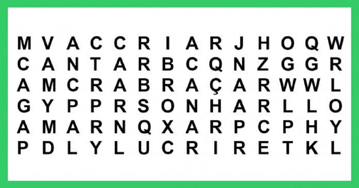 Confira abaixo a resolução do caça-palavras:
