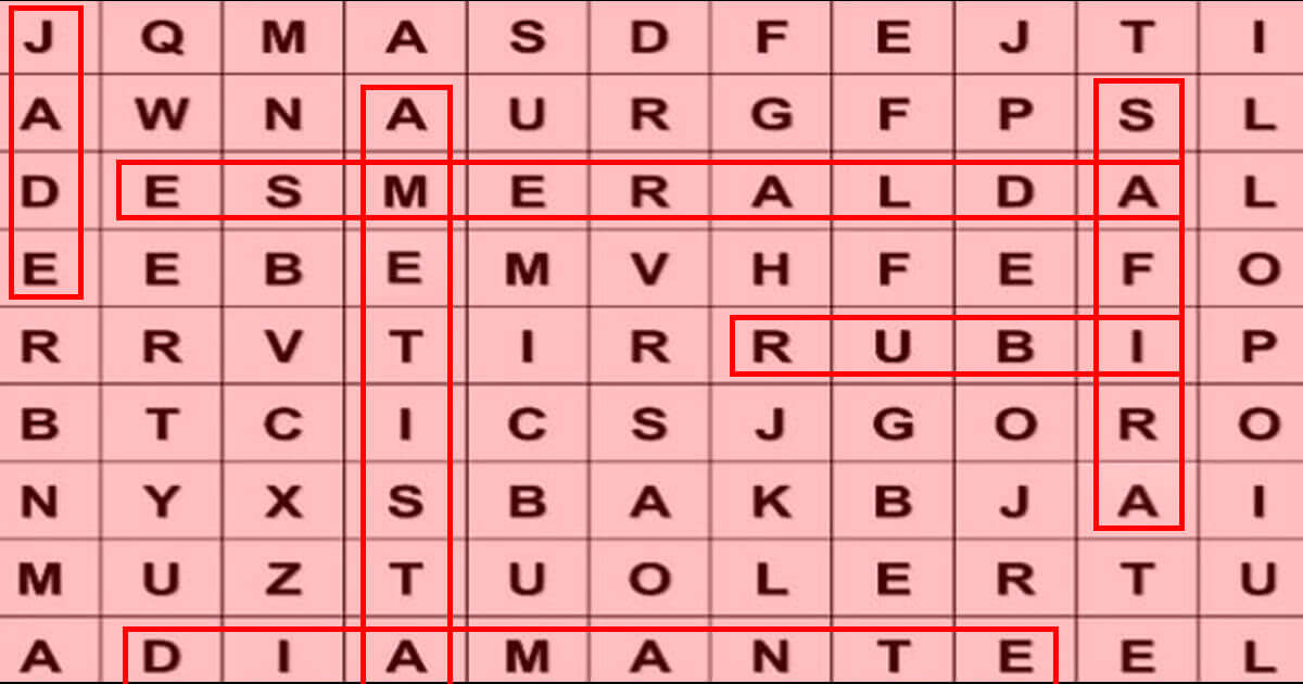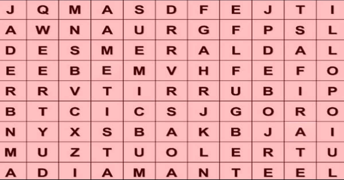Segundo esse pequeno teste, a primeira pedra preciosa que você descobre neste caça-palavras pode vir a refletir grandes aspectos de sua vida e de sua personalidade, como preferências, emoções, entre outros.