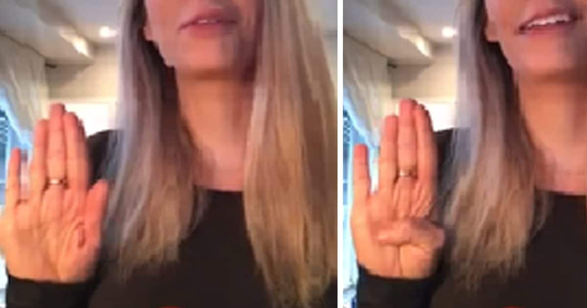 De acordo com a Canadian Women’s Foundation, uma entidade que ajuda mulheres em situação de violência doméstica, o movimento realizado pela garote consiste em mostrar a palma da mão, dobrar o dedão para dentro e depois fechar a mão, com os dedos cobrindo o dedão. Confira a imagem explicativa: