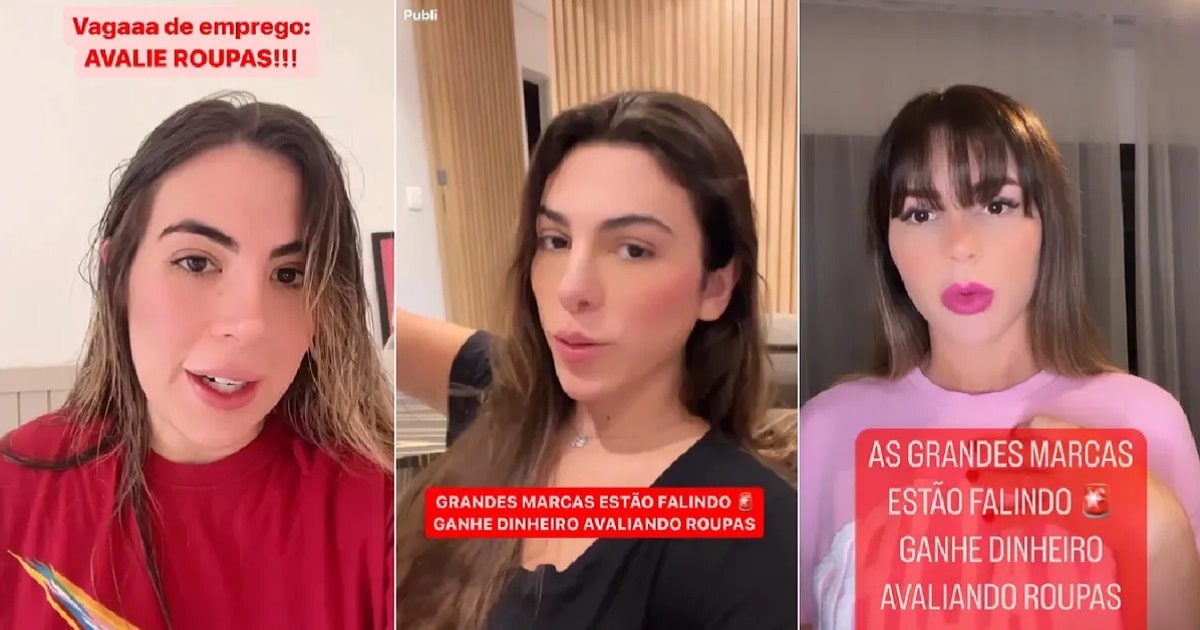 Alguns mencionam a Shein, enquanto outros afirmam que “grandes marcas estão falindo”. Em alguns vídeos, eles prometem pagar R$ 1 por peça avaliada.