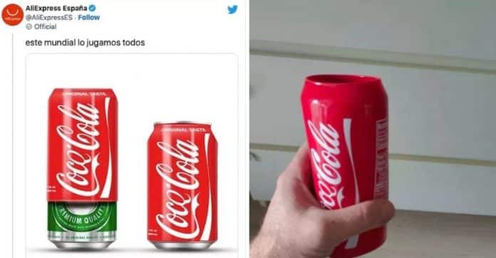 A publicação da plataforma de vendas online, refere-se a uma imagem de uma capa em forma de lata de Coca-Cola que deveria cobrir uma lata de cerveja, acompanhada de uma mensagem que diz: “Estamos todos jogando esta Copa do Mundo” .