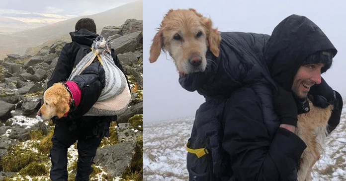 Enquanto tentavam ajudá-la, o casal notou que a cadela não conseguia andar. Escolheram tentar carregá-la, mas o sistema não funcionou afinal ainda estavam a cinco horas de distância e a pouco mais de 10 quilômetros de qualquer lugar onde pudessem buscar ajuda. Usando um lenço como tipoia, o casal conseguiu fazer uma espécie de maca, com a qual conseguiram suportar o peso do animal.