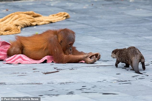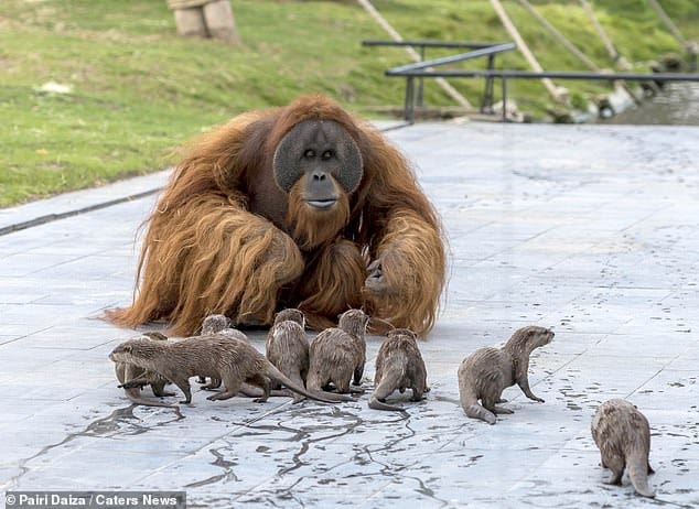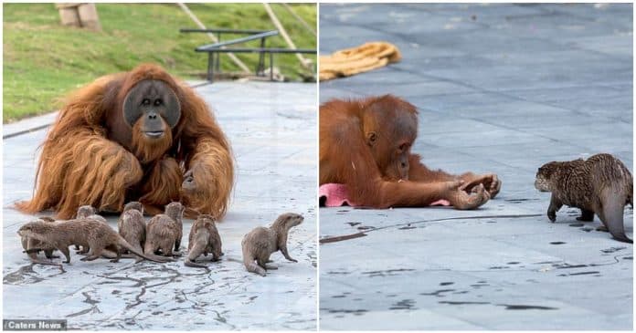 Nasceu no zoológico Pairi Daiza, em Brugelette, na Bélgica, a mais improvável das amizades, entre uma família de orangotangos e um grupo de lontras anãs asiáticas. A sintonia entre eles é tamanha não dá para acreditar que se tratam de animais de espécies diferentes.