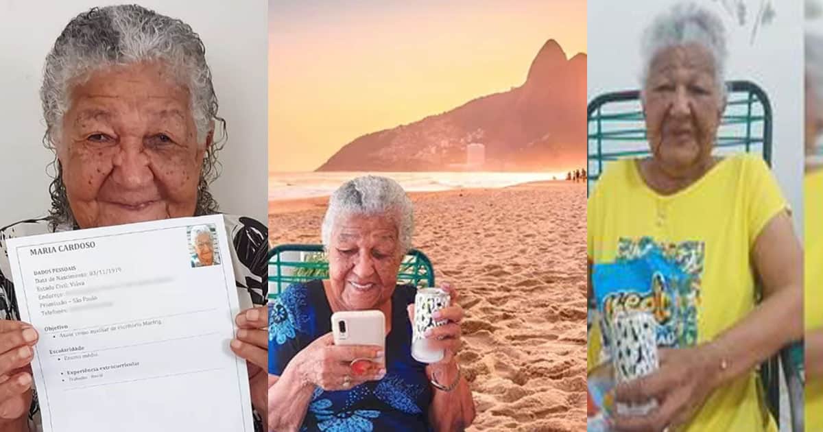 Mas dona Maria Cardoso nunca teve medo de trabalhar e manteve seu papel de influencer exaltando uma lata de frisante, produto que costuma divulgar: “Vai Brasil”, disse a influencer centenária!