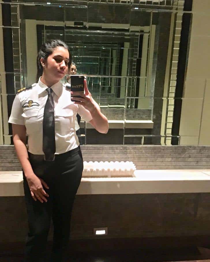 Em suas aulas, recebeu treinamento para voar um jato MIG-29 na base aérea russa de Sokol e em 2017 finalmente conseguiu se formar em aviação no Bombay Flying Club (BFC), obtendo uma licença comercial para voar. Então, aos 25 anos e no presente ano de 2020, tornou-se a mulher mais jovem a pilotar um avião comercial para uma companhia aérea.