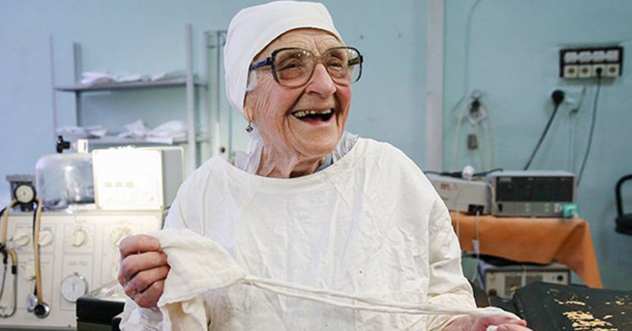 Ela já se aposentou há muitos anos, mas continua trabalhando. Trata-se da médica Alla Ilyinichna Levushkina, hoje com 91 anos. Esta senhora, apaixonada por sua profissão, é médica proctologista e se tornou a cirurgiã mais velha do mundo em exercício.