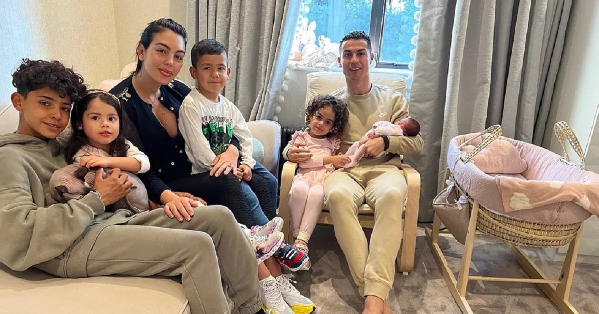 Cristiano, de 37 anos, já é pai de Cristiano Jr., nascido em 2010 nos Estados Unidos, fruto de uma relação anterior do jogador. O jogadpr também tem os gêmeos Mateo Ronaldo e Eva Maria, de 4 anos, que nasceram de barriga de aluguel, em 2017, quando o craque e Georgina já se relacionaam. Cinco meses depois veio Alana Martina, filha biológica dela.