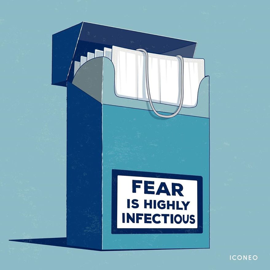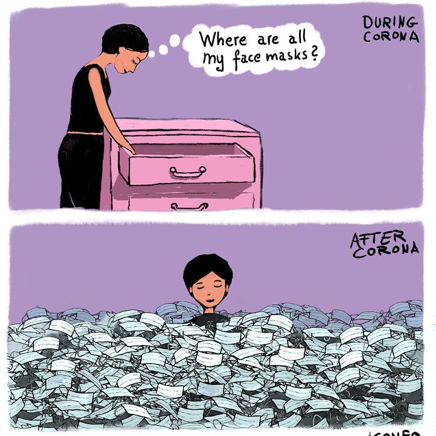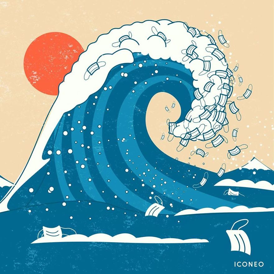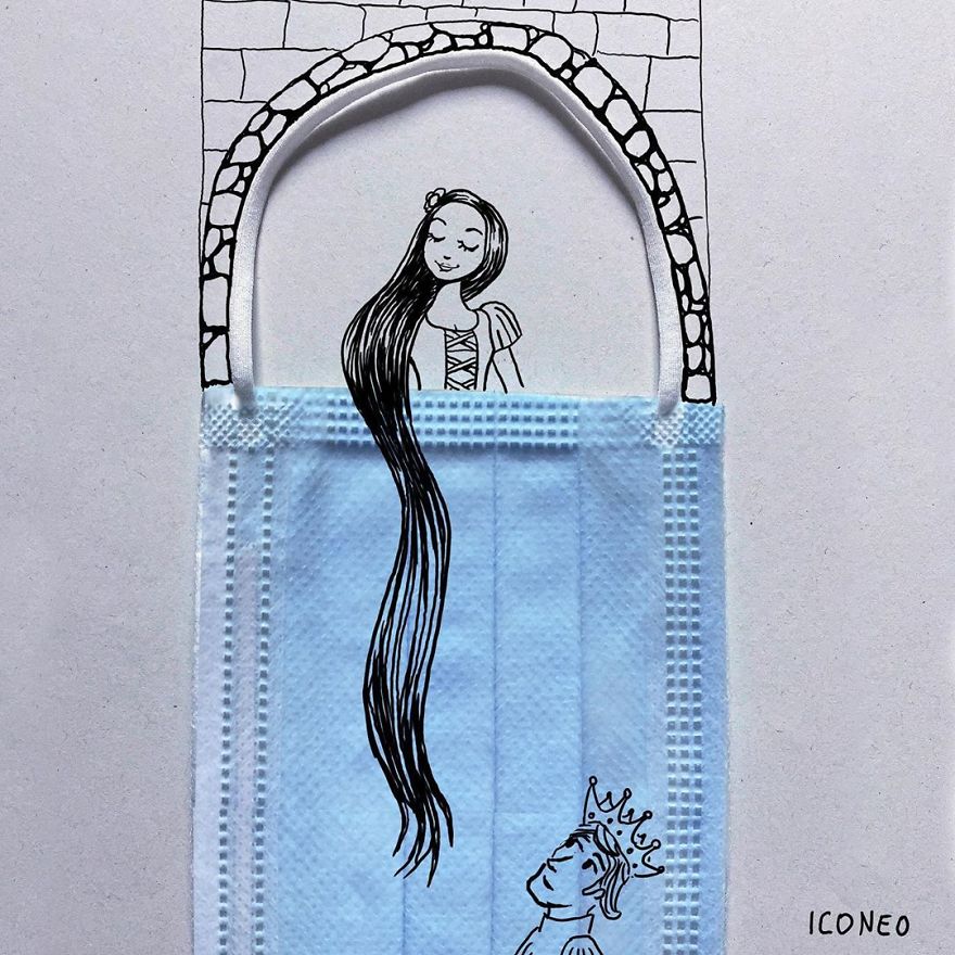 Quando questionado sobre como surgiu a ideia de criar tal série de ilustrações, o designer deixou claro: “Fazer arte com máscaras faciais é minha maneira de converter uma coisa estranha e assustadora em algo interessante e divertido. Em algumas ilustrações, estou focando no problema do desperdício de usar máscaras descartáveis. Elas estão colocadas no chão como folhas no outono.”