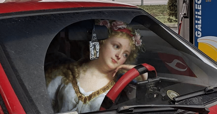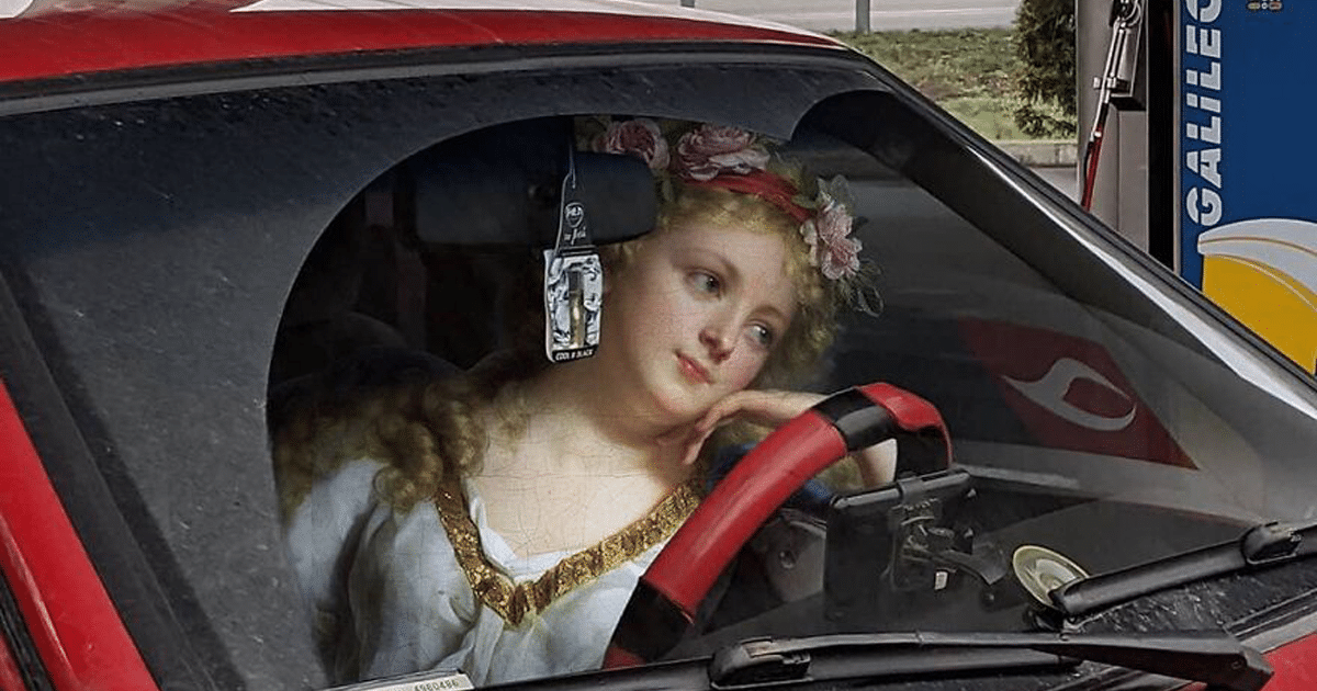 Alexey Kondakov é um artista ucraniano que insere pessoas da pintura clássica no mundo moderno e seus cenários. Ele coloca figuras clássicas em metrôs, mercados, carros e muitos outros lugares habituais para nós, mas bastante incomuns para pinturas seminuas.