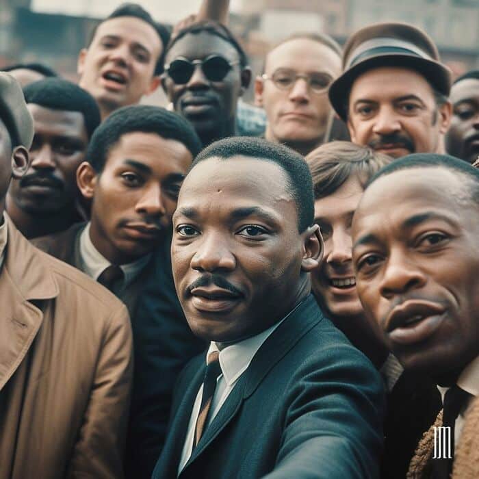 Utilizando a inteligência artificial como ferramenta, Mulloor recria as feições e os trajes de personalidades como Martin Luther King, Albert Einstein e Madre Teresa de Calcutá, inserindo-os em situações cotidianas e contemporâneas. O resultado é uma obra que mescla história, tecnologia e arte, convidando o espectador a refletir sobre a influência da cultura visual e as possibilidades da inteligência artificial na criação artística.