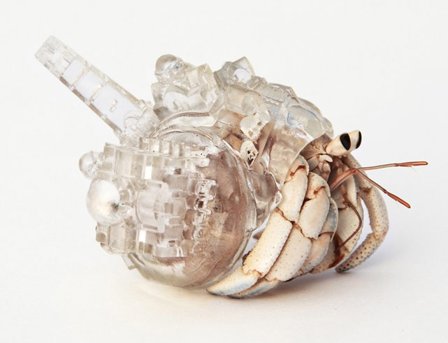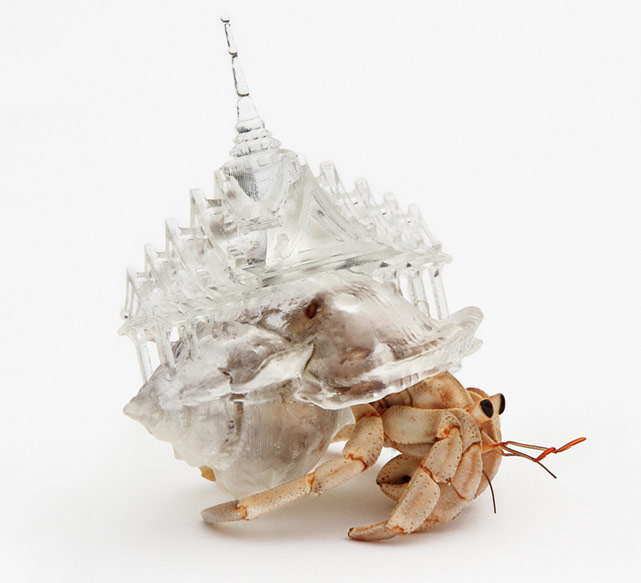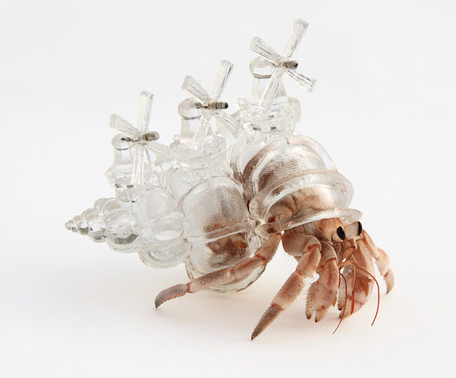 No projeto “Why Not Hand Over a ‘Shelter’ to Hermit Crabs?” [Por Que Não Entregar Uma Concha para o Caranguejo Ermitão?] ela cria carapaças de plástico influenciada pela arquitetura de grandes cidades e, com a ajuda de uma impressora 3d, entrega as novas “casinhas” para os crustáceos, também conhecidos comopaguro e eremita.