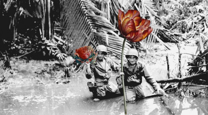 Artista substitui armas por flores em fotos vintage de soldados em tempos de guerra