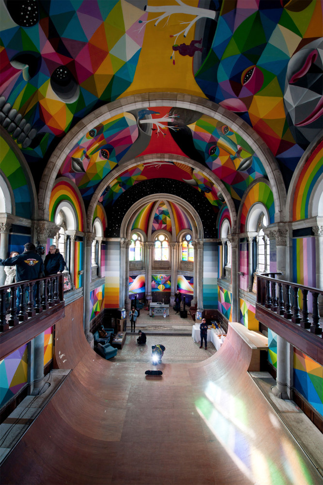Alguns anos foram necessários para tirar esse projeto cultural do papel, mas, enfim, foi concretizado com sucesso. O produto final é uma paróquia multicolorida psicodélica que serve de pista de skate artística.