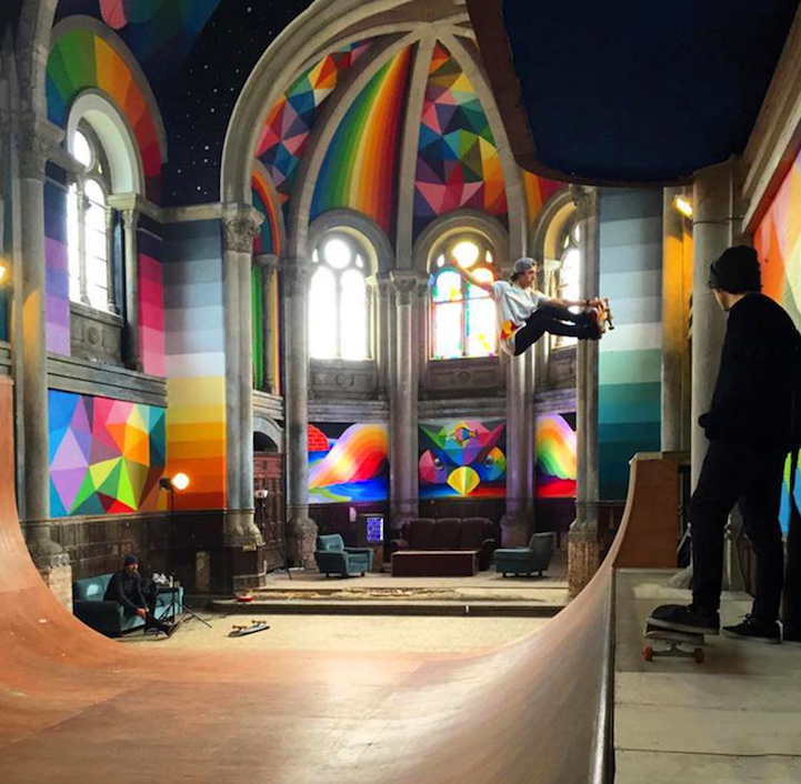 O espaço foi apelidado pelos idealizadores de Kaos Temple. Um grupo de entusiastas do skate, intitulado Church Brigade, levantou fundos para viabilizar o projeto de renovação do local, buscou patrocinadores oficiais (incluindo a marca Red Bull), e até mesmo chamou a atenção do artista de rua Okuda San Miguel, que se ofereceu para decorar os tetos abobadados e paredes da igreja com seu estilo artístico peculiar.