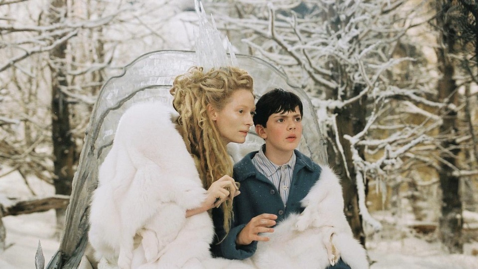 No filme a Rainha seduz o menino Edmundo e o leva para seu reino gelado, assim como no conto. Seus irmãos o salvam e nesse tempo o inverno vai aos poucos se desfazendo.