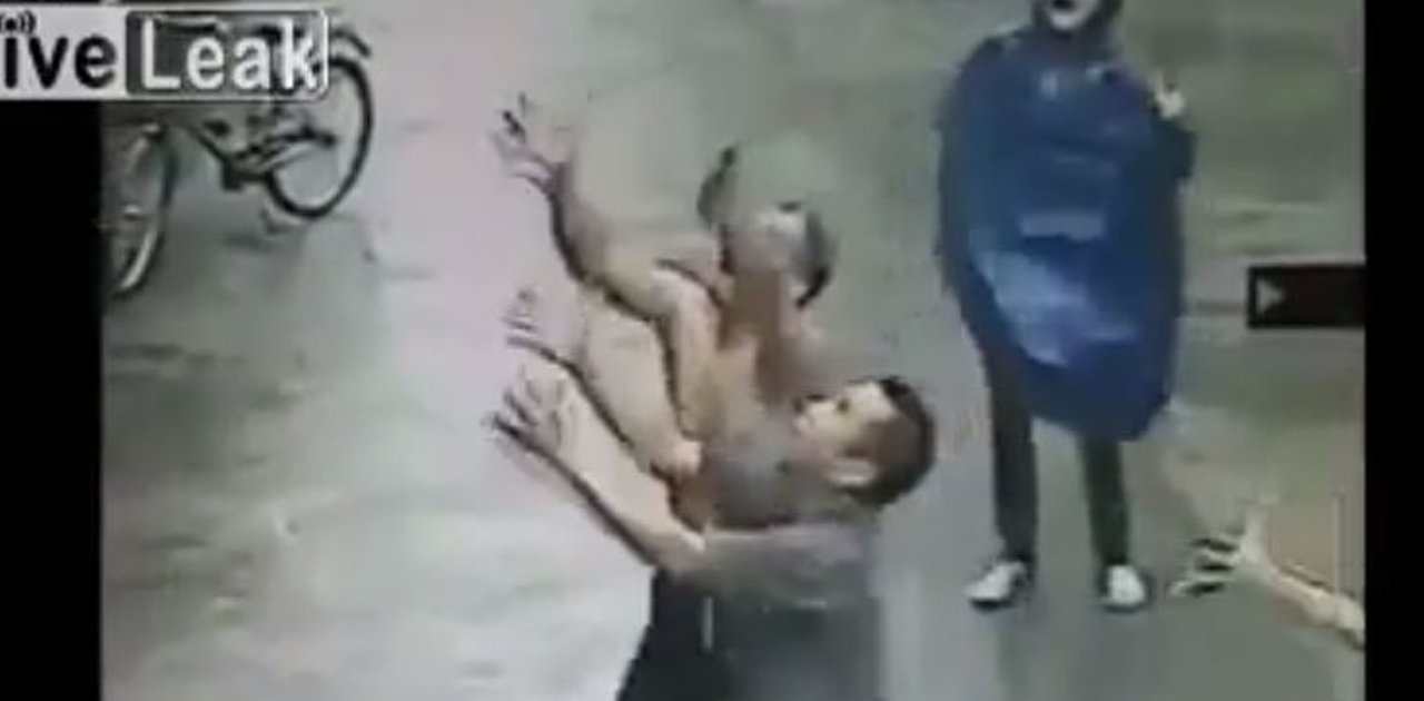 Um homem conseguiu pegar nos braços um bebê de um ano que caiu da janela do segundo andar de um prédio no último domingo (18), no sul da China.