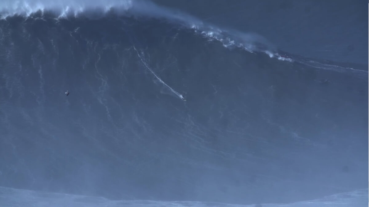 A onda que fez com que o surfista brasileiro conquistasse o record tinha uma altura de aproximadamente 24,38 metros ( o record anterior era de 23,77 metros). Veja as imagens.