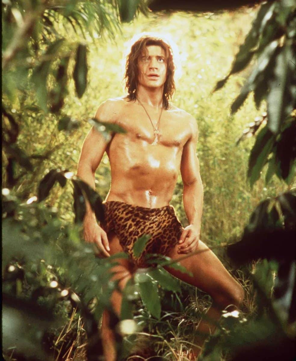 Na comédia, que chegou aos cinemas em 1997, Fraser aparecia a maior parte do tempo vestido apenas com uma tanga, já que seu personagem havia sido criado desde a infância por gorilas na selva de Uganda.