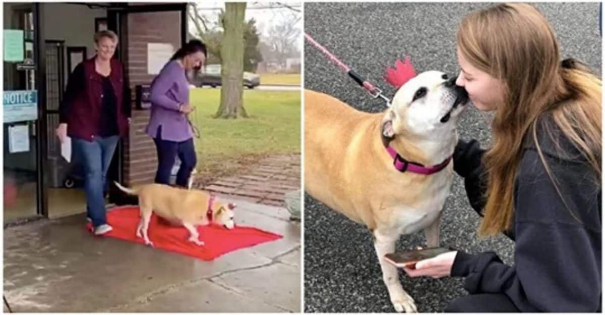 Antes de ir para seu lar definitivo, Sandi fez seu “passeio de liberdade” pelo único lar que já tinha conhecido. Ela usou uma coroa para cumprimentar seus novos pais enquanto caminhava alegremente pelo tapete vermelho estendido no chão do abrigo. Foi uma despedida emocionante!