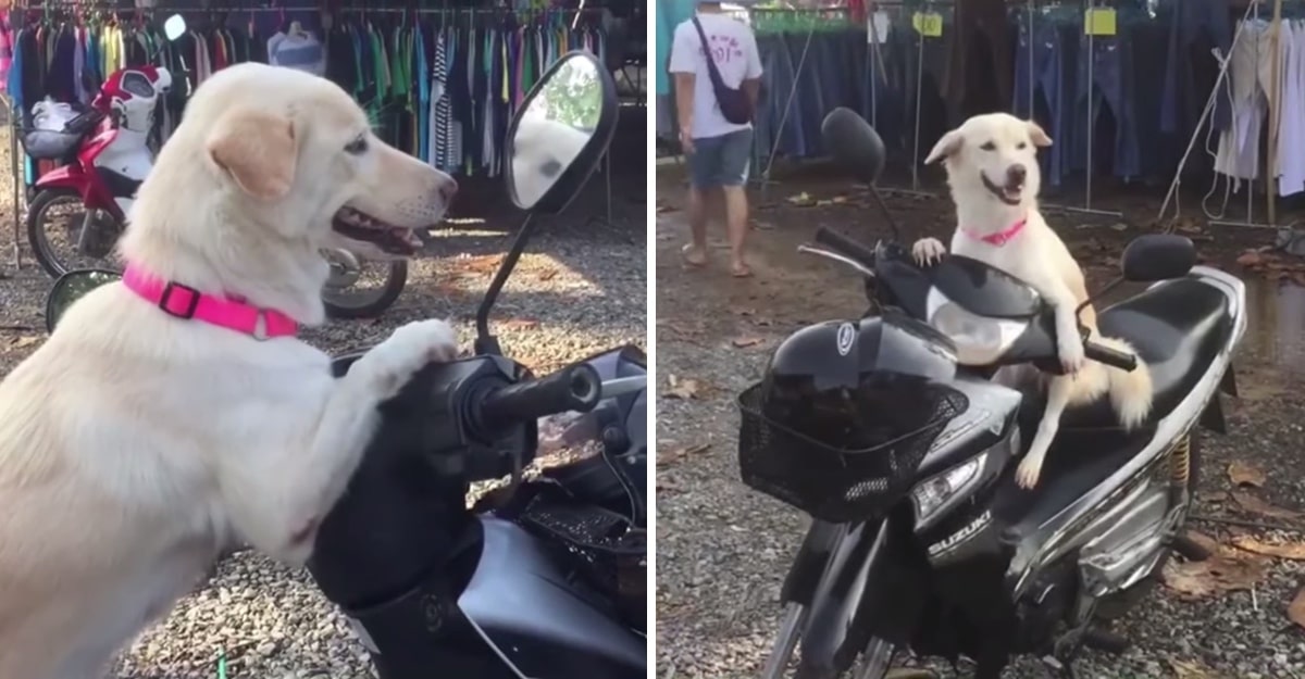 Cachorrinha obediente espera na moto enquanto sua dona faz as compras. Veja o vídeo!