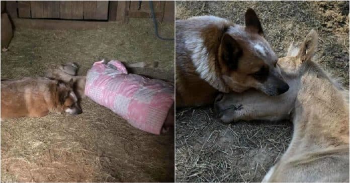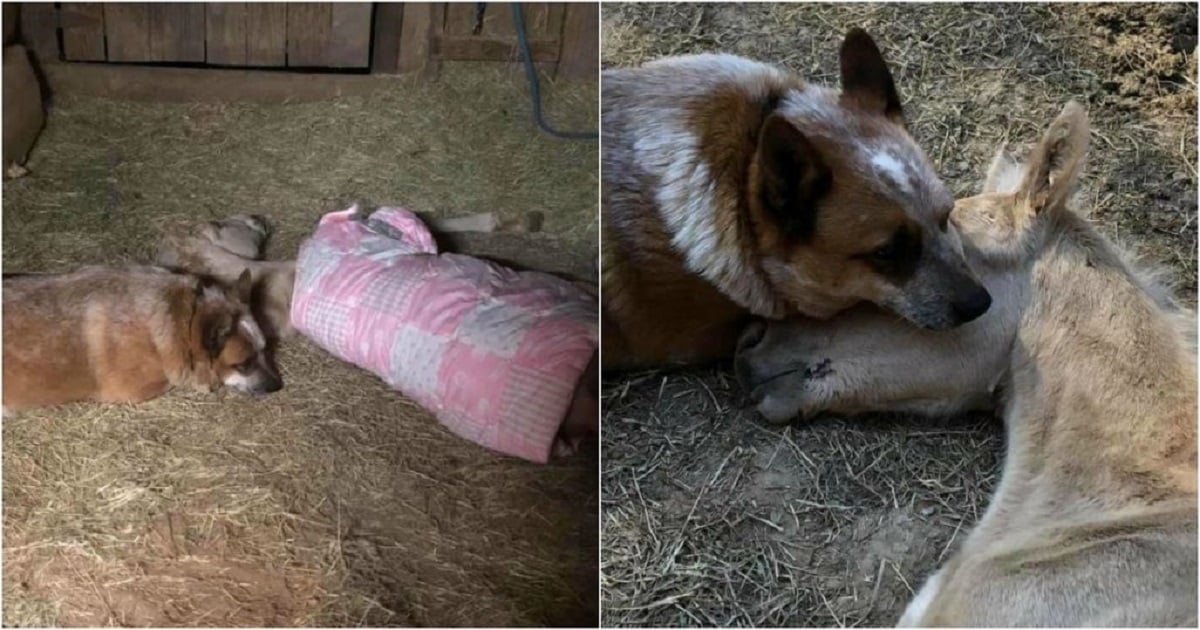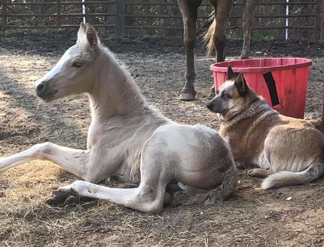 “Passei a noite no celeiro cuidando da mãe depois que ela deu à luz, esperando que ela melhorasse. Zip ficou no corredor e o potro estava lá. Ele ficou ao lado dele a noite toda”, diz Karla sobre a noite em que a égua faleceu.