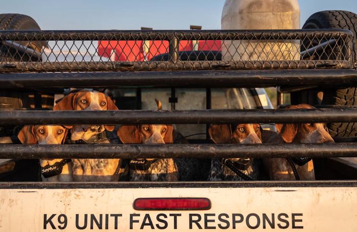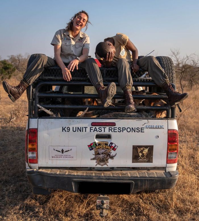 É por isso que o fotógrafo compartilhou uma série de imagens desta equipe de cães corajosos em ação no Southern African Wildlife College no Kruger National Park.