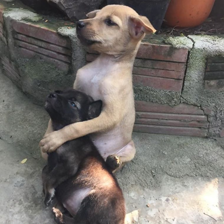 A vivência nas ruas, entretanto, parece ter deixado marcas nos cãezinhos. Após serem salvos, os irmãos simplesmente não se desgrudam. A amizade entre eles é imensurável e passam a maior parte do tempo abraçados. Quem vê a cena, imagina que um ainda protege o outro frente a um desafio que acreditam estar por vir.