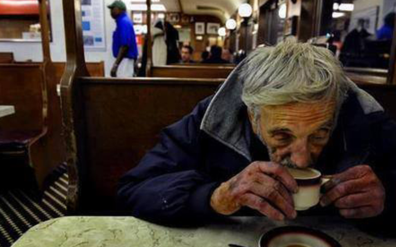Algumas pessoas mais entraram. Duas meninas pediram um café cada, pagaram e foram embora. A ordem seguinte foi para sete cafés e foi feita por três advogados – três para eles e quatro “suspensos”. Enquanto eu ainda me pergunto qual é o significado dos “suspensos” eles saem. De repente, um homem vestido com roupas gastas que parece um mendigo chega na porta e pede cordialmente: