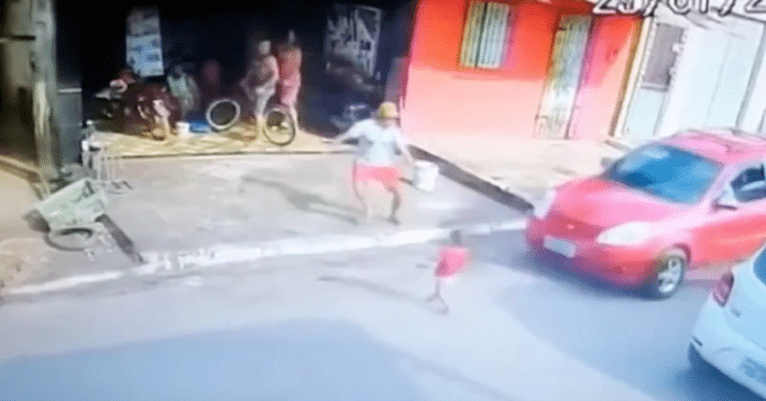 Tudo porque uma criança que andava sozinha pela rua estava prestes a ser atropelada por um veículo que vinha em sua direção, quando foi salva por um homem que conseguiu agir rápido. (Vídeo ao final da matéria)