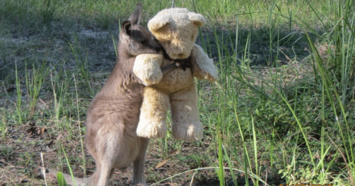 Uma foto do pequeno canguru abraçando seu ursinho de pelúcia viralizou nas redes e fez muita gente suspirar.